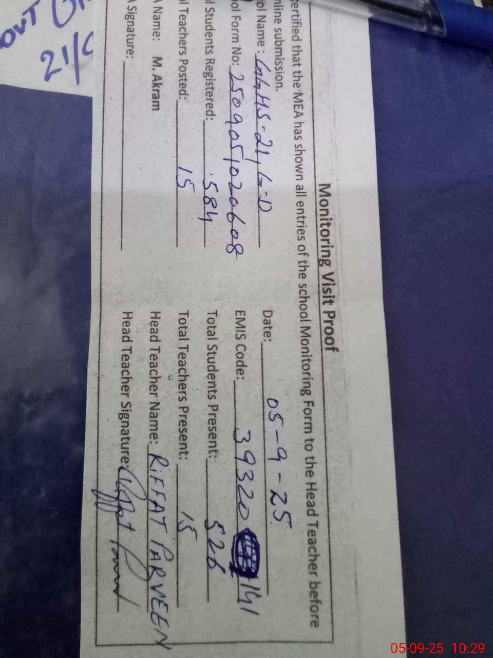 | EMIS Code: 39320141 | Name of School: GGHS 21/G.D | |||