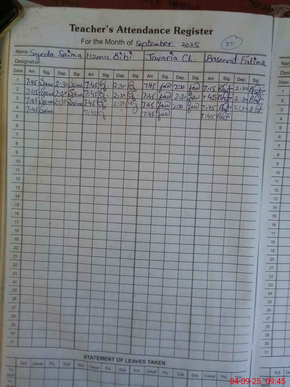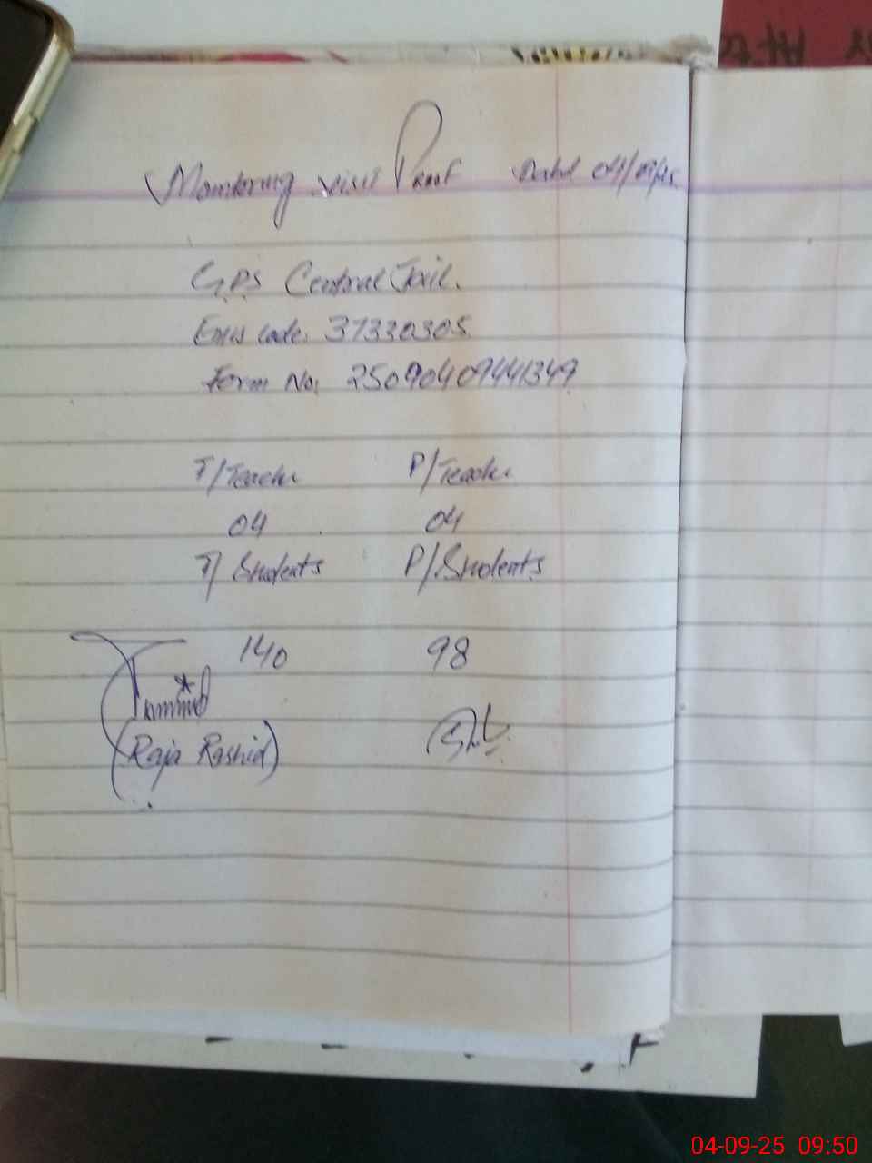 | Name: Sy**** Sa**** Zu**** Designation: (School Headmaster's/Headmistress's) PST Phone/Cell Number: 03**** |