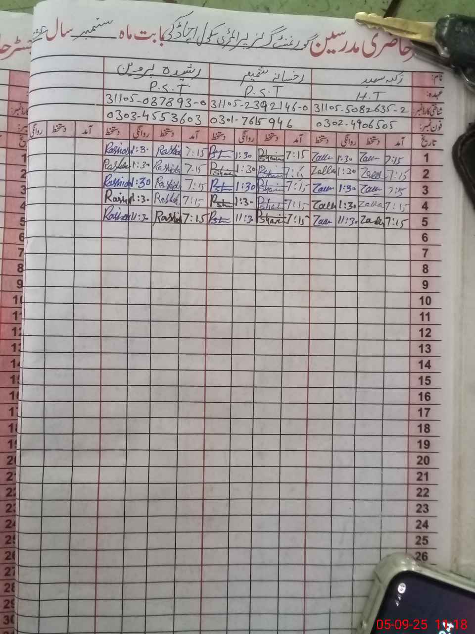 | Name: Za**** Sa**** Designation: (School Headmaster's/Headmistress's) PST Phone/Cell Number: 03**** |