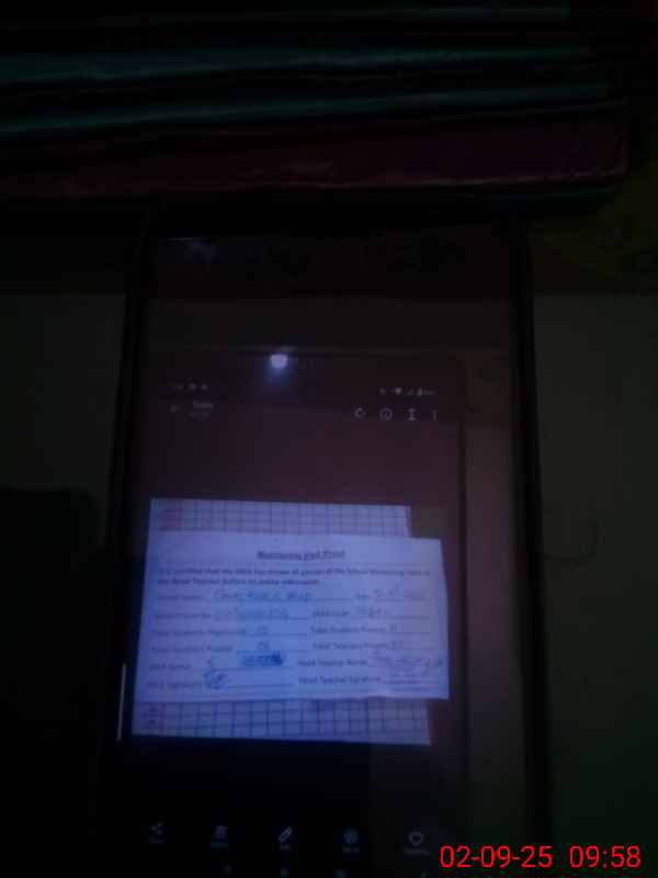 | Total no. of Classrooms: 2 No. of Classrooms Used for Teaching: 2 No. of Classrooms Storing Old Furniture, FTBs, etc: 0Comments if Any: PST ATTIYA IS ABSENT DUE TO NO PROOF OF MAT LEAVE IS AVAILABLE TODAY NO FREE BOOKS RECORD IS IN SCHOOL NO LND MATERIAL DISLSYED DATA FILLED AGAIN DUE TO LOCATION ERROR SUBMITTING |