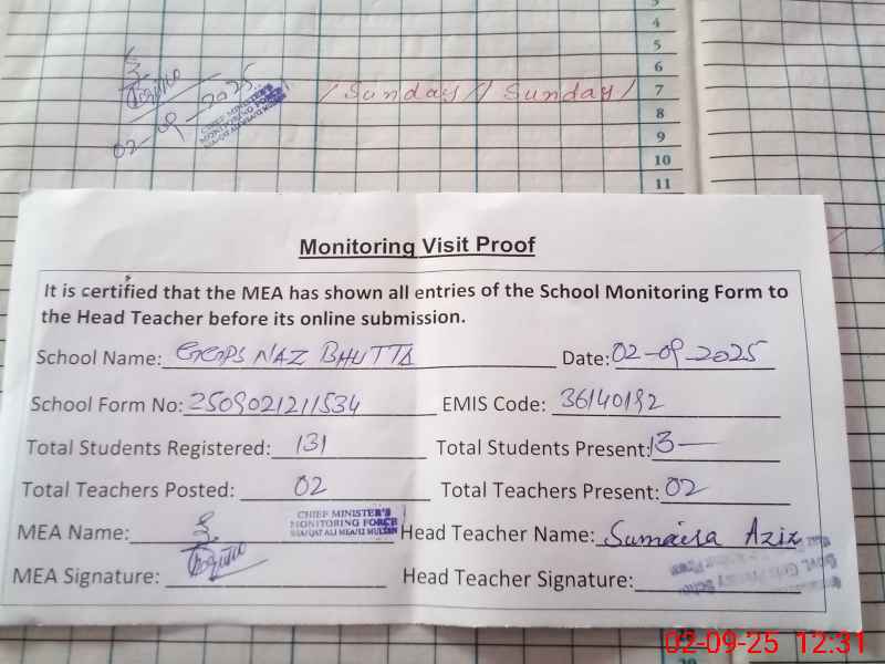 | EMIS Code: 36140192 | Name of School: GGPS NIAZ BHUTTA | |||