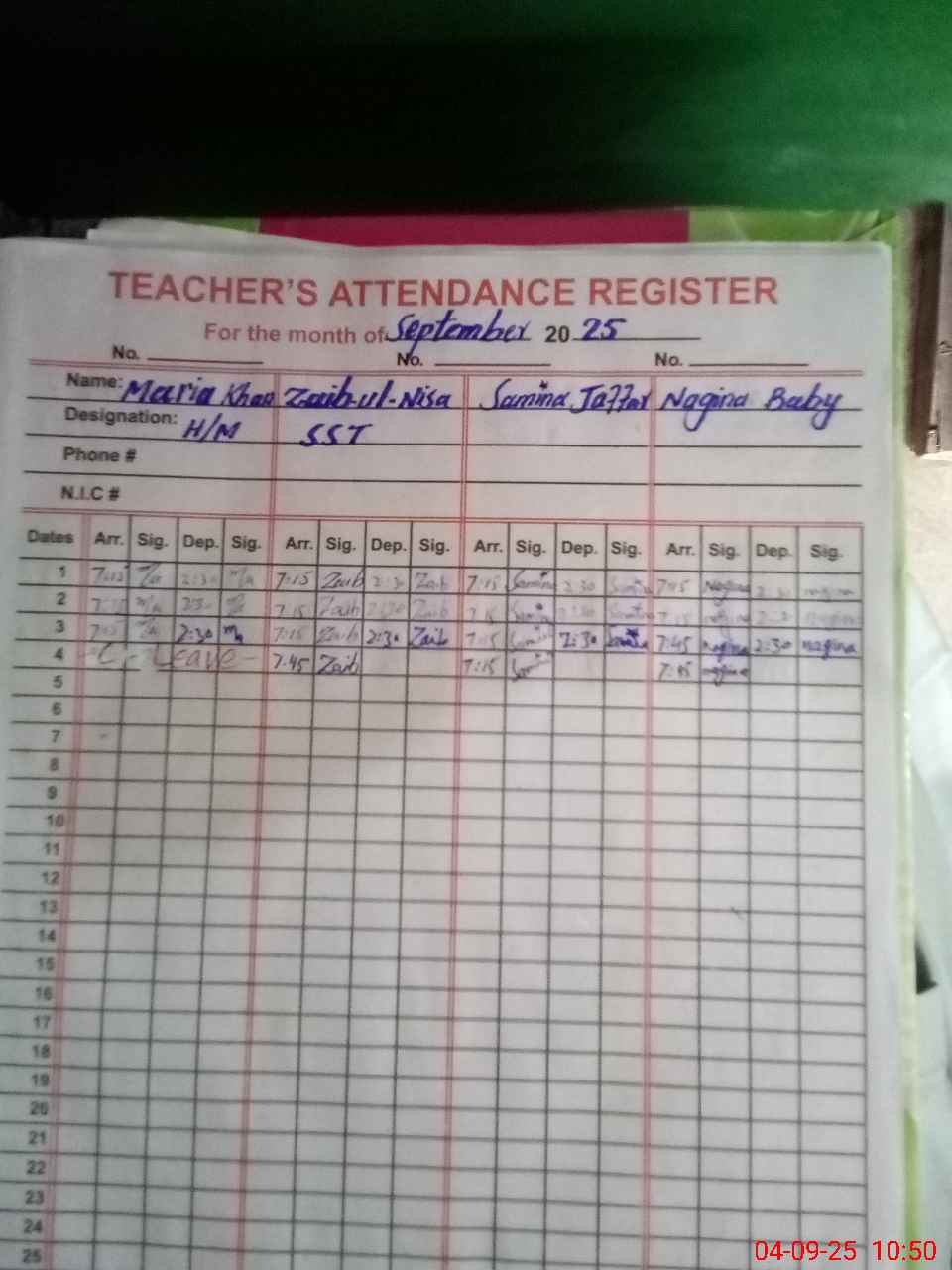 | Name: Za**** unNi**** Designation: (School Headmaster's/Headmistress's) HEADMISTRESS Phone/Cell Number: 03**** |