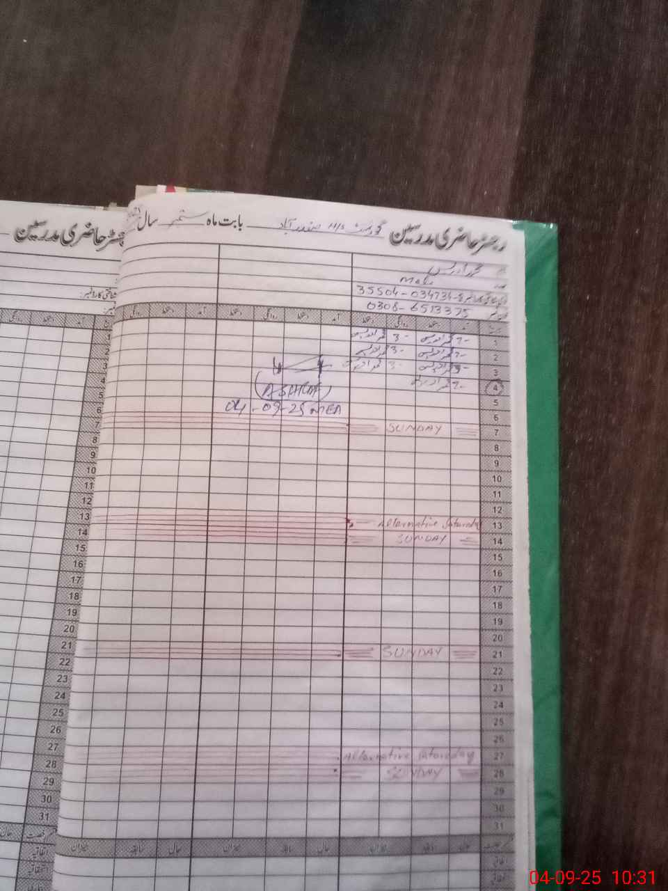 | CNIC | Full Name | Designation | R/C | Absence During Last Calender Month |