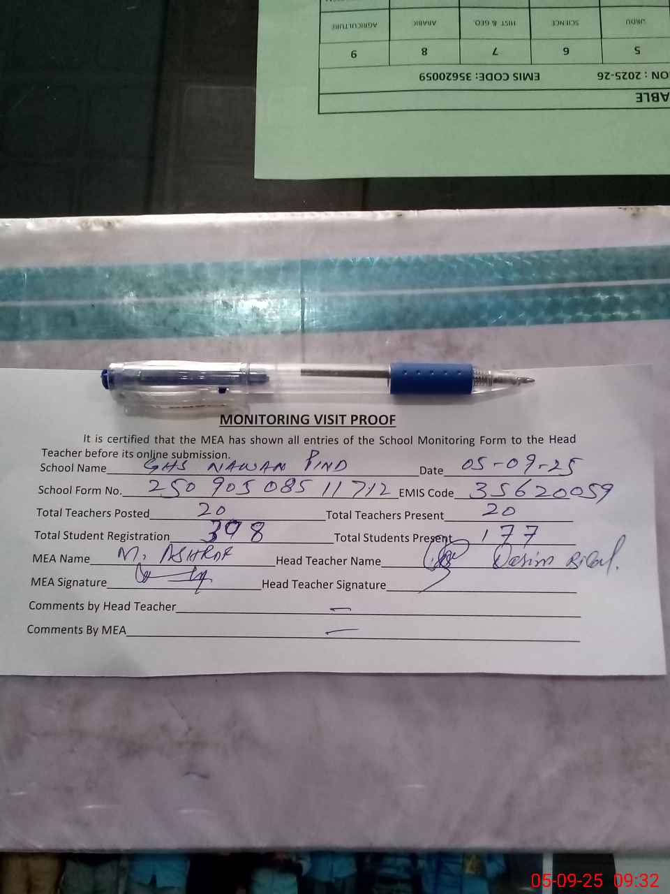 | EMIS Code: 35620059 | Name of School: GHS NAWAN PIND CHAK 78 | |||