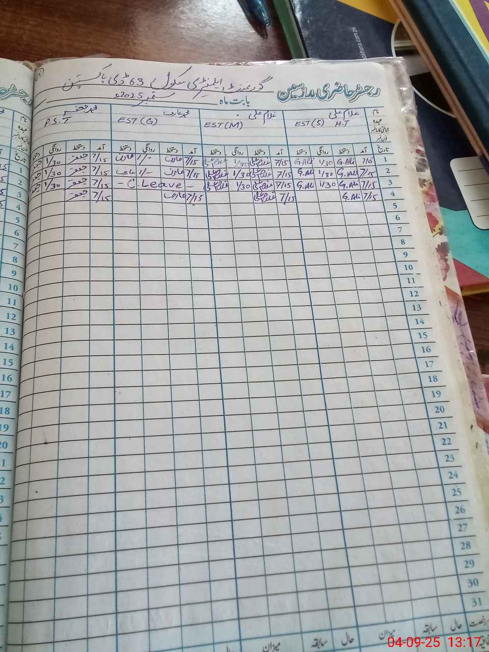 | CNIC | Full Name | Designation | R/C | Absence During Last Calender Month |