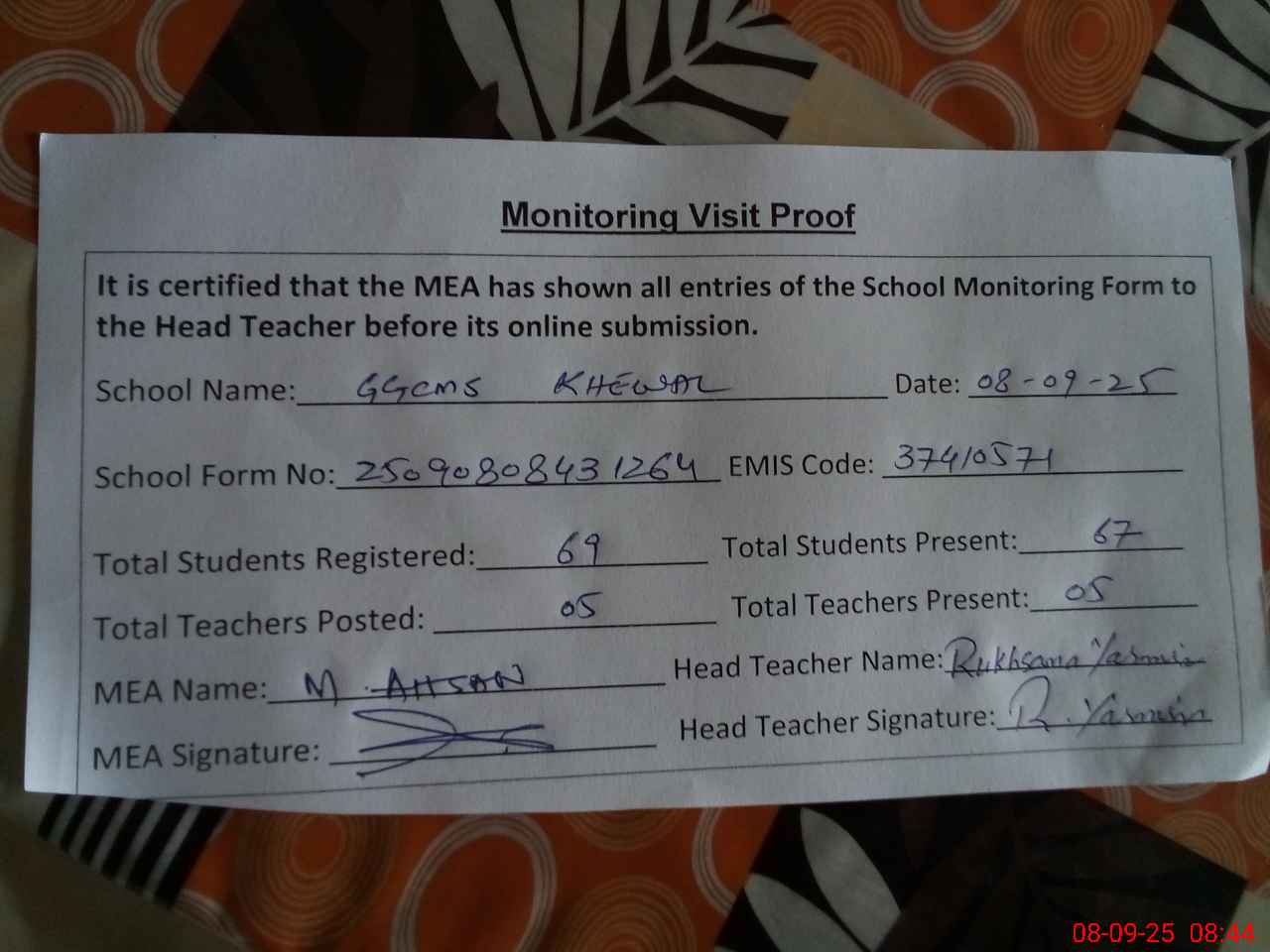 | EMIS Code: 37410571 | Name of School: GGCMS KHEWAL | |||