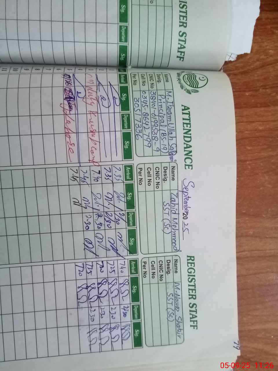 | CNIC | Full Name | Designation | R/C | Absence during last cal. month |