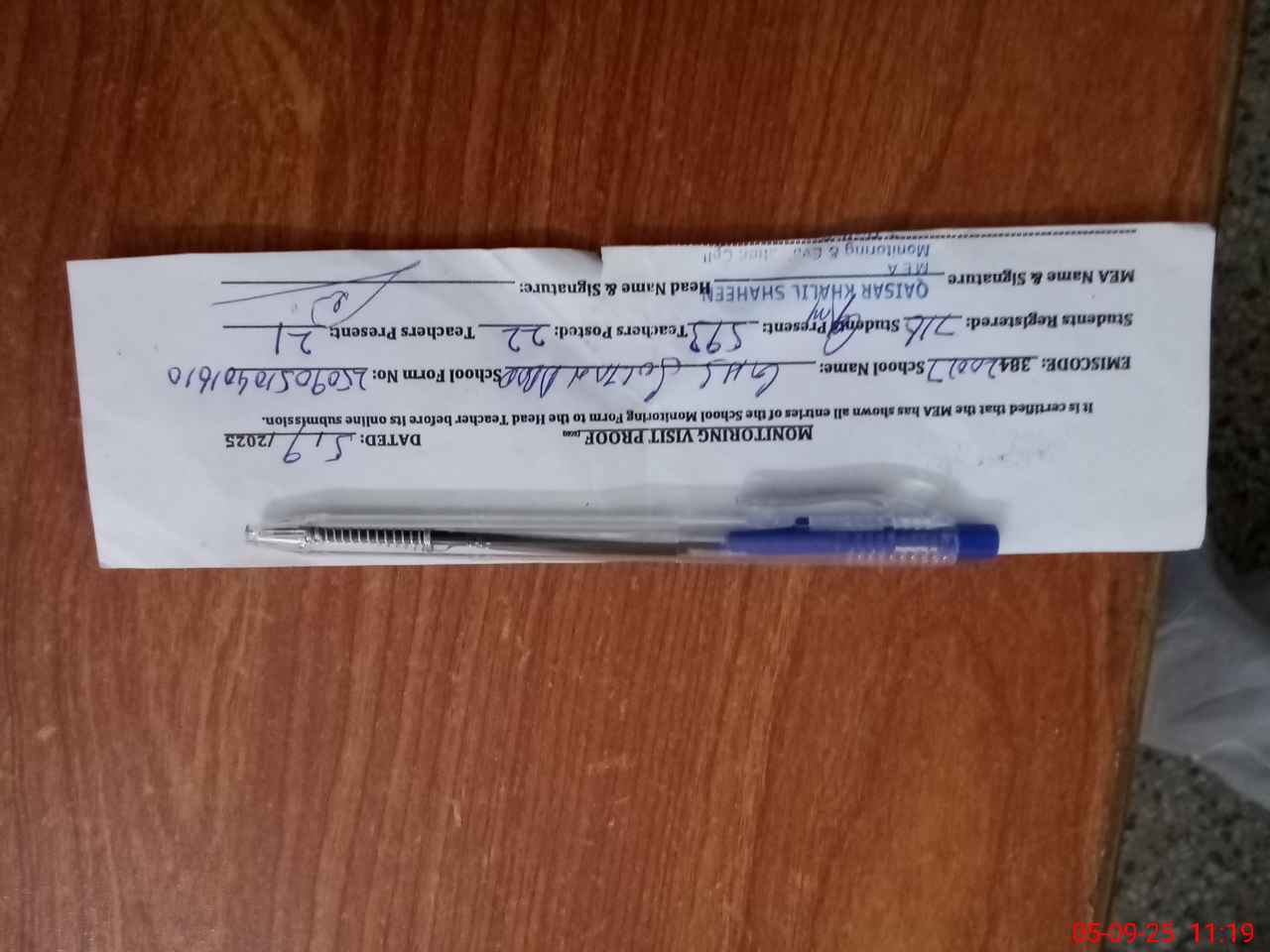 | Attendance Register | Head Teacher | MEA with School | Visit Proof |