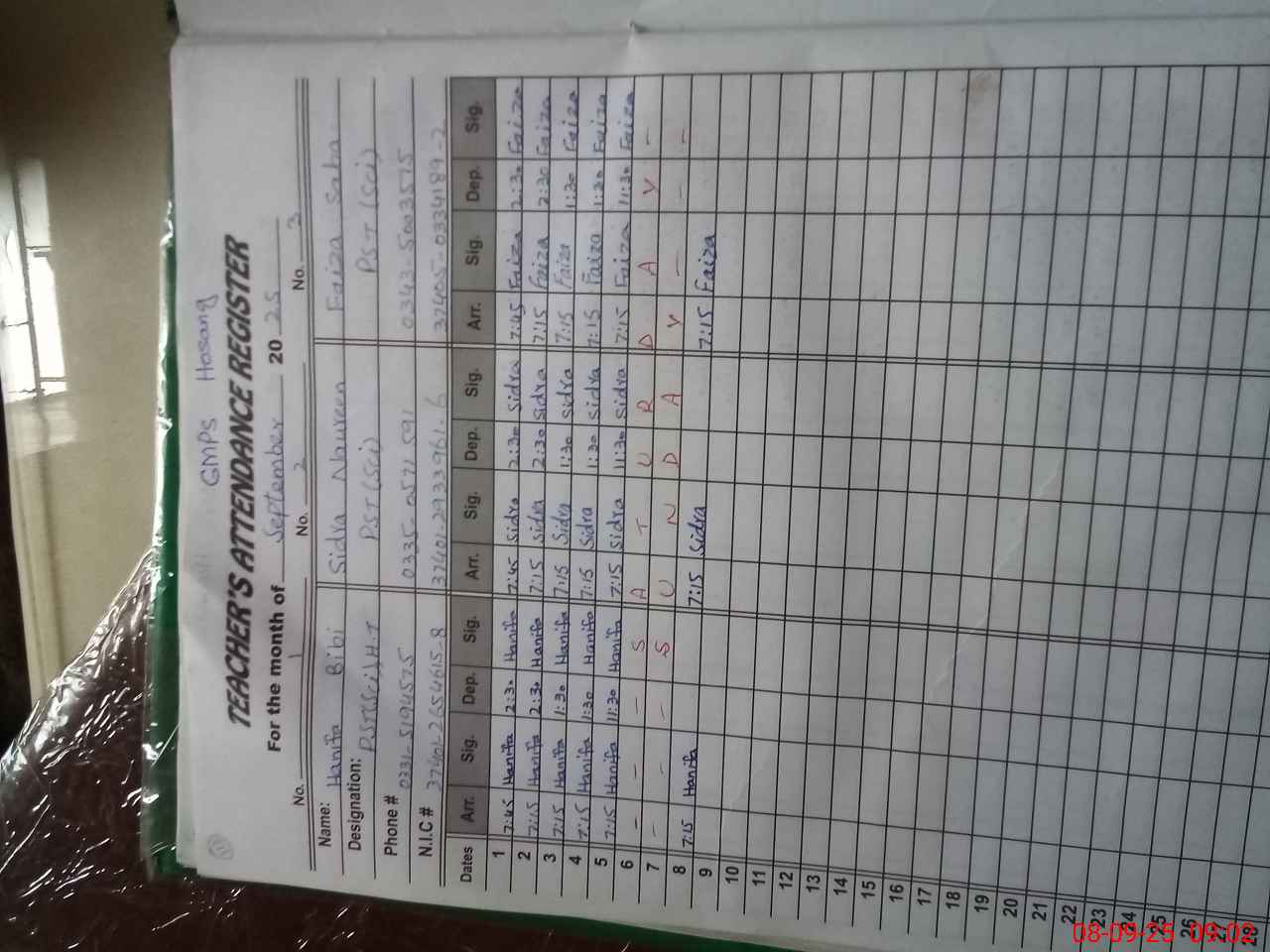 | Name: Ha**** BiBi Designation: (School Headmaster's/Headmistress's) PST Phone/Cell Number: 03**** |