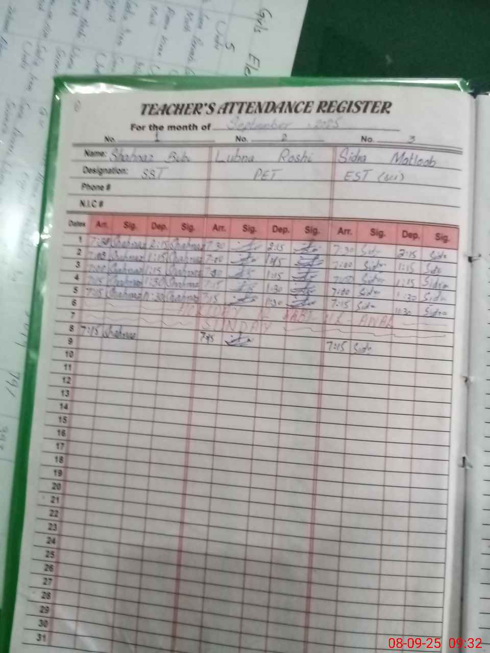 | Name: Sh**** BiBi Designation: (School Headmaster's/Headmistress's) SST G) Phone/Cell Number: 03**** |