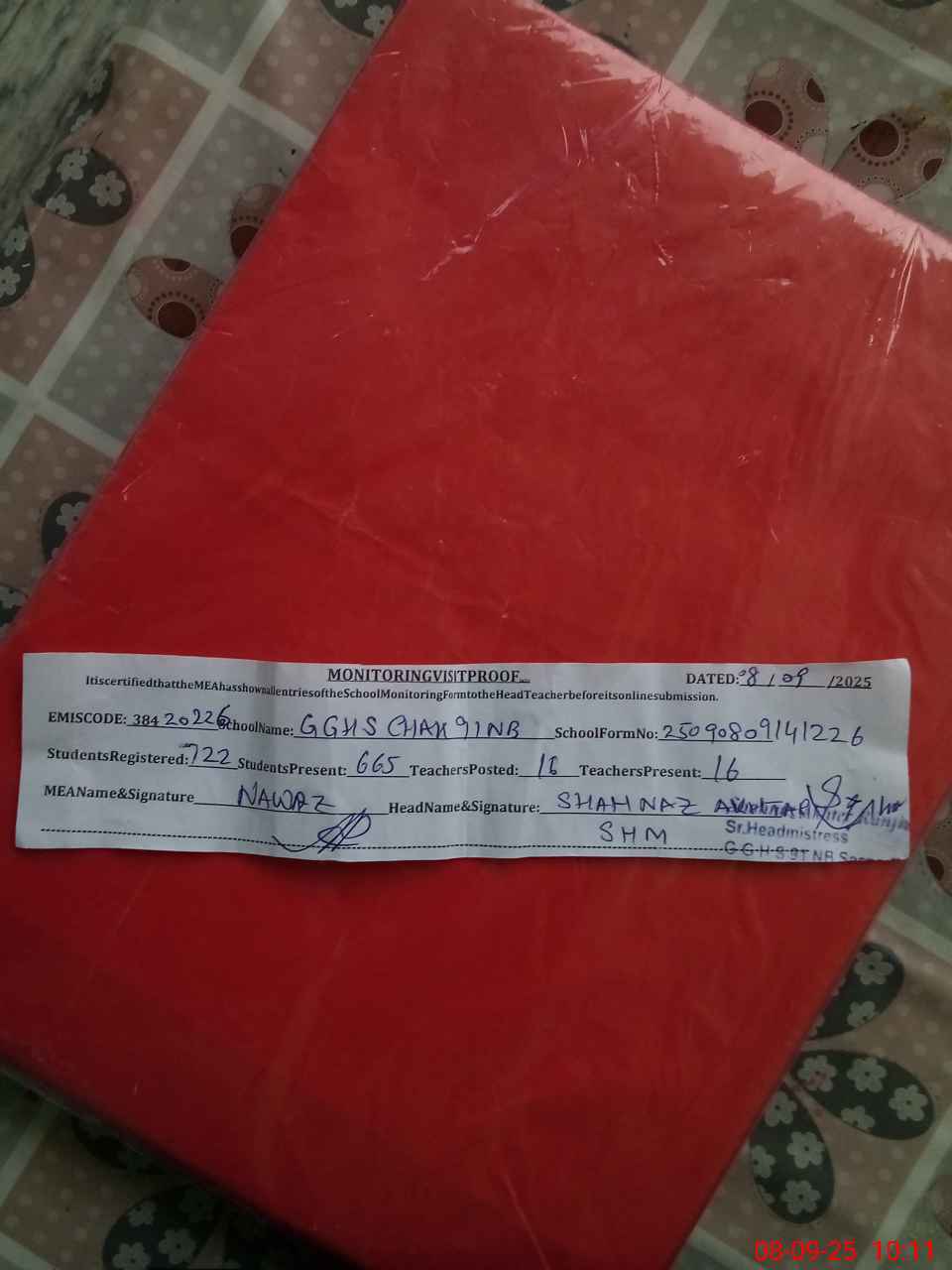 | Attendance Register | Head Teacher | MEA with School | Visit Proof |