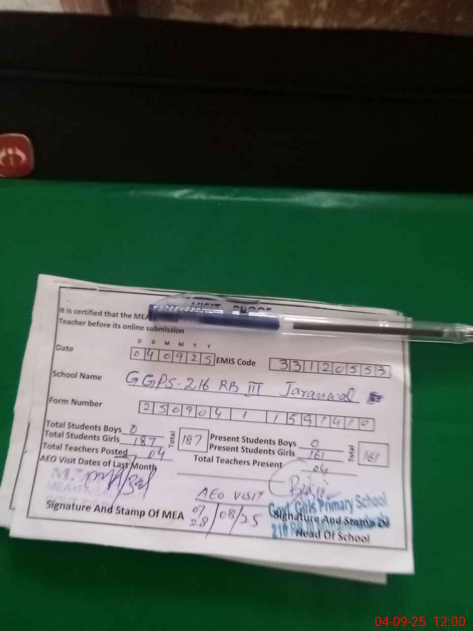 | EMIS Code: 33120553 | Name of School: GGPS CHAK NO. 216 RB III | |||