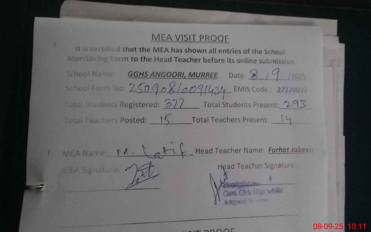 | EMIS Code: 37320039 | Name of School: GGHS ANGOORI | |||