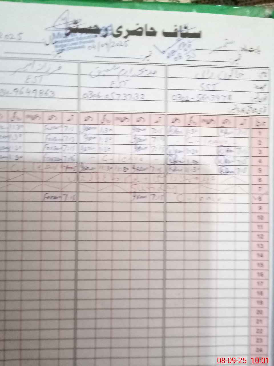 | CNIC | Full Name | Designation | R/C | Absence During Last Calender Month |