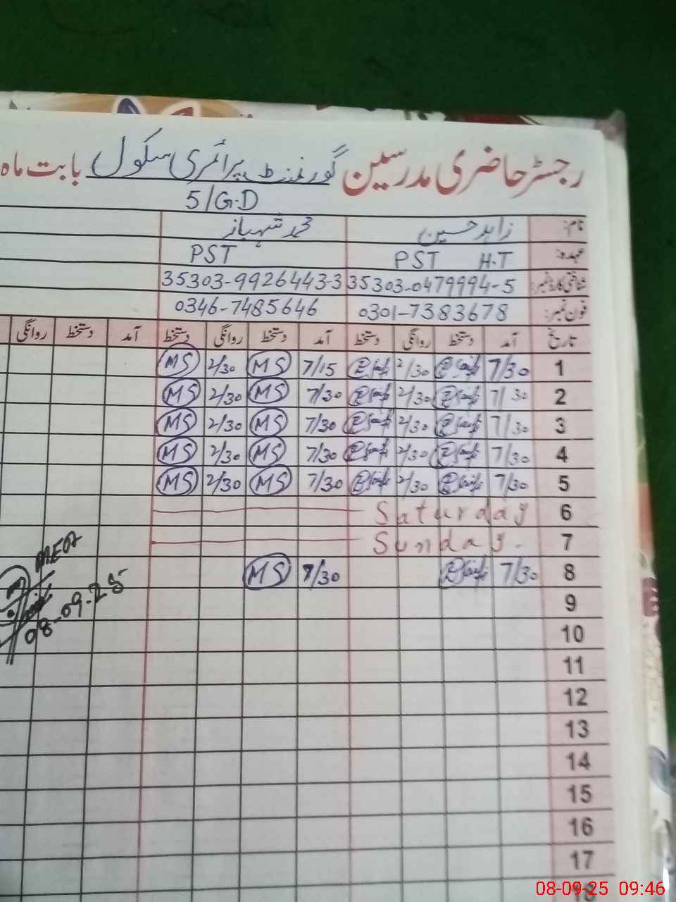 | EMIS Code: 39330325 | Name of School: GPS CHAK NO 5/GD | |||