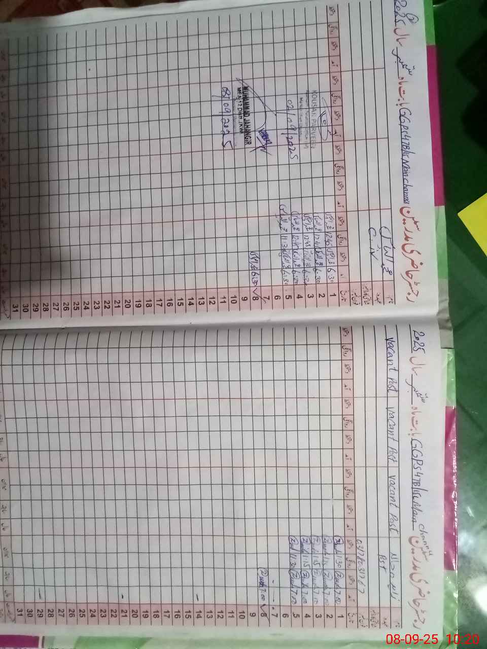 | Name: Za**** Kh**** Designation: (School Headmaster's/Headmistress's) PST Phone/Cell Number: 03**** |