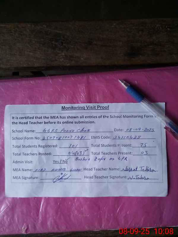 | EMIS Code: 34110428 | Name of School: GGPS PEERO CHAK | |||