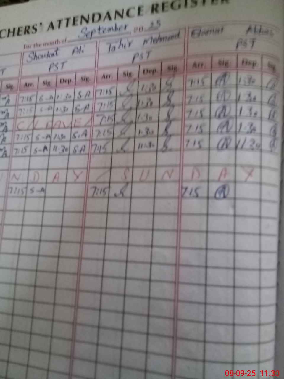 | CNIC | Full Name | Designation | R/C | Absence During Last Calender Month |