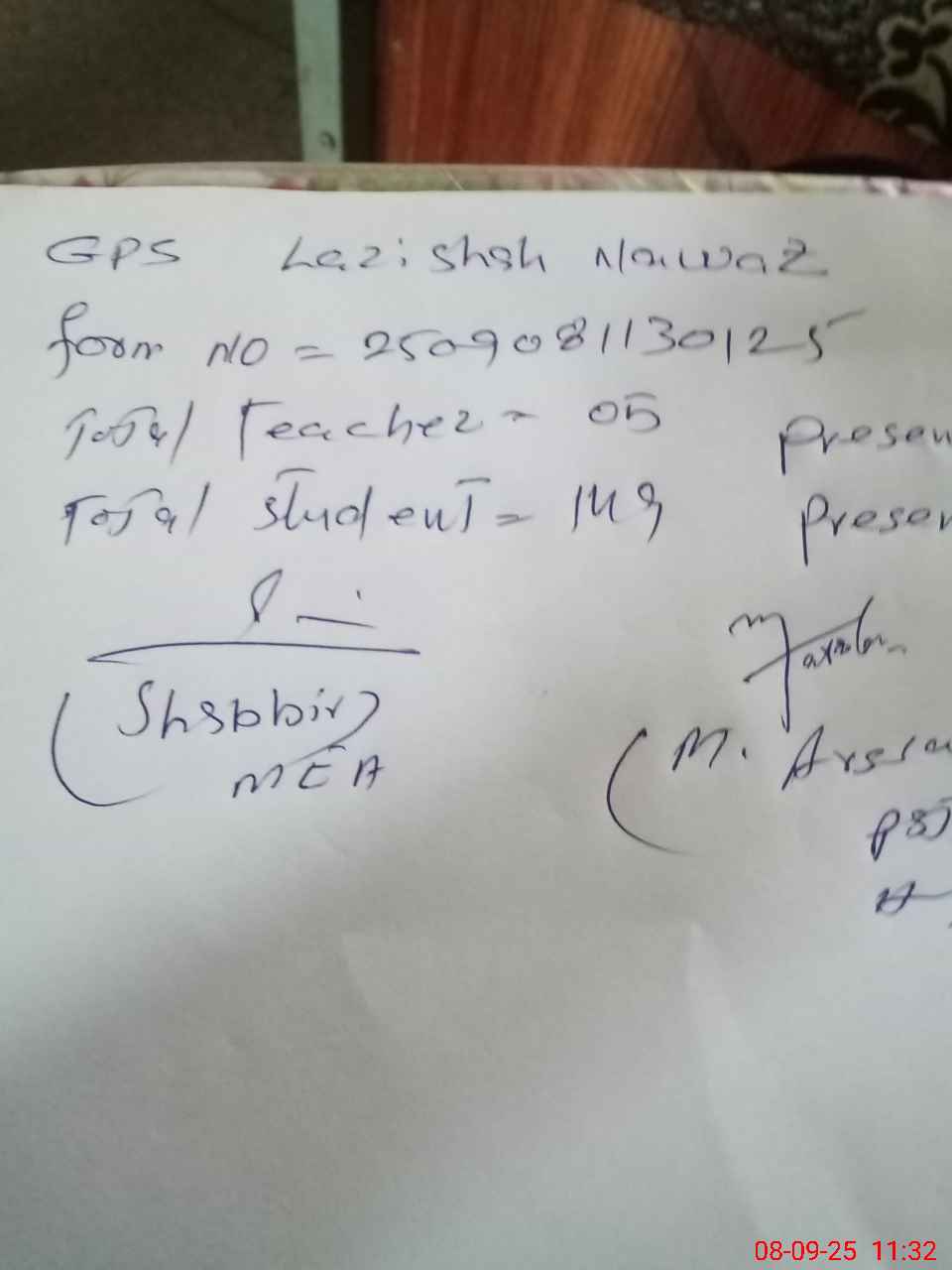 | Name: Mu**** Ar**** Designation: (School Headmaster's/Headmistress's) Headmistress Phone/Cell Number: 03**** |