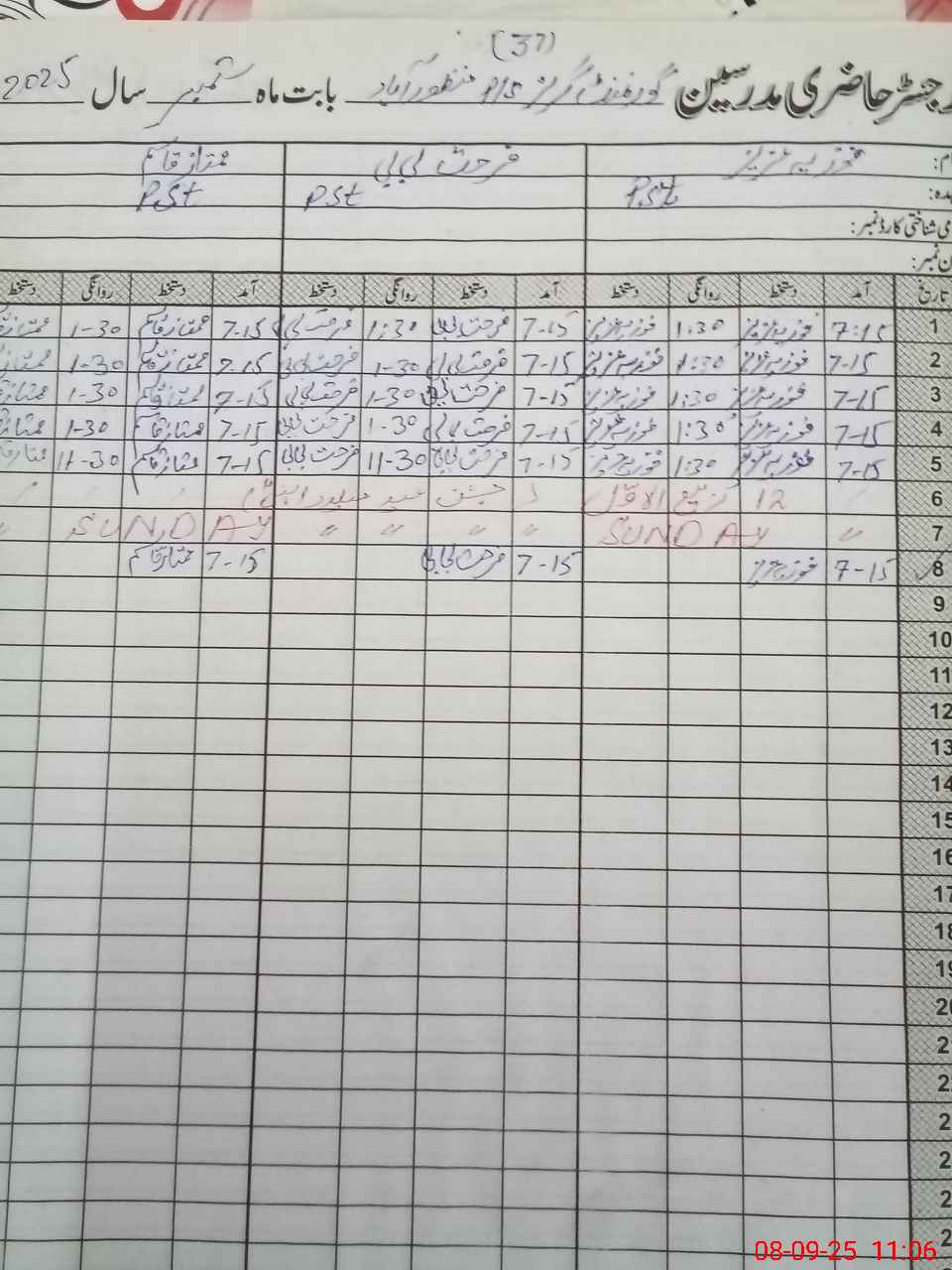 | Name: FO**** AZ**** Designation: (School Headmaster's/Headmistress's) PST Phone/Cell Number: 03**** |