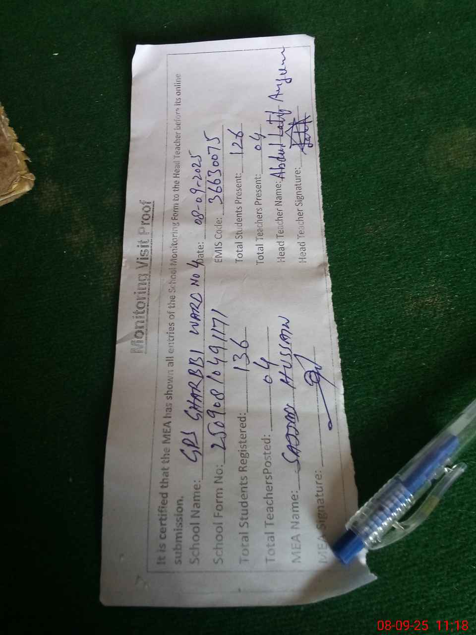| EMIS Code: 36630075 | Name of School: GPS GHARBI WARD NO 4 | |||