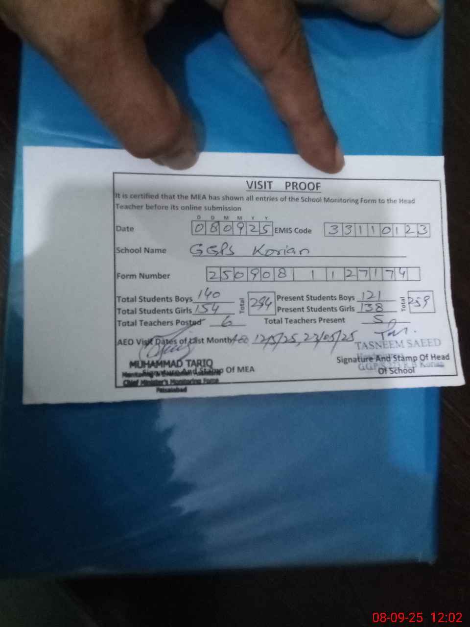 | EMIS Code: 33110123 | Name of School: GGPS KORIAN FAISALABAD | |||