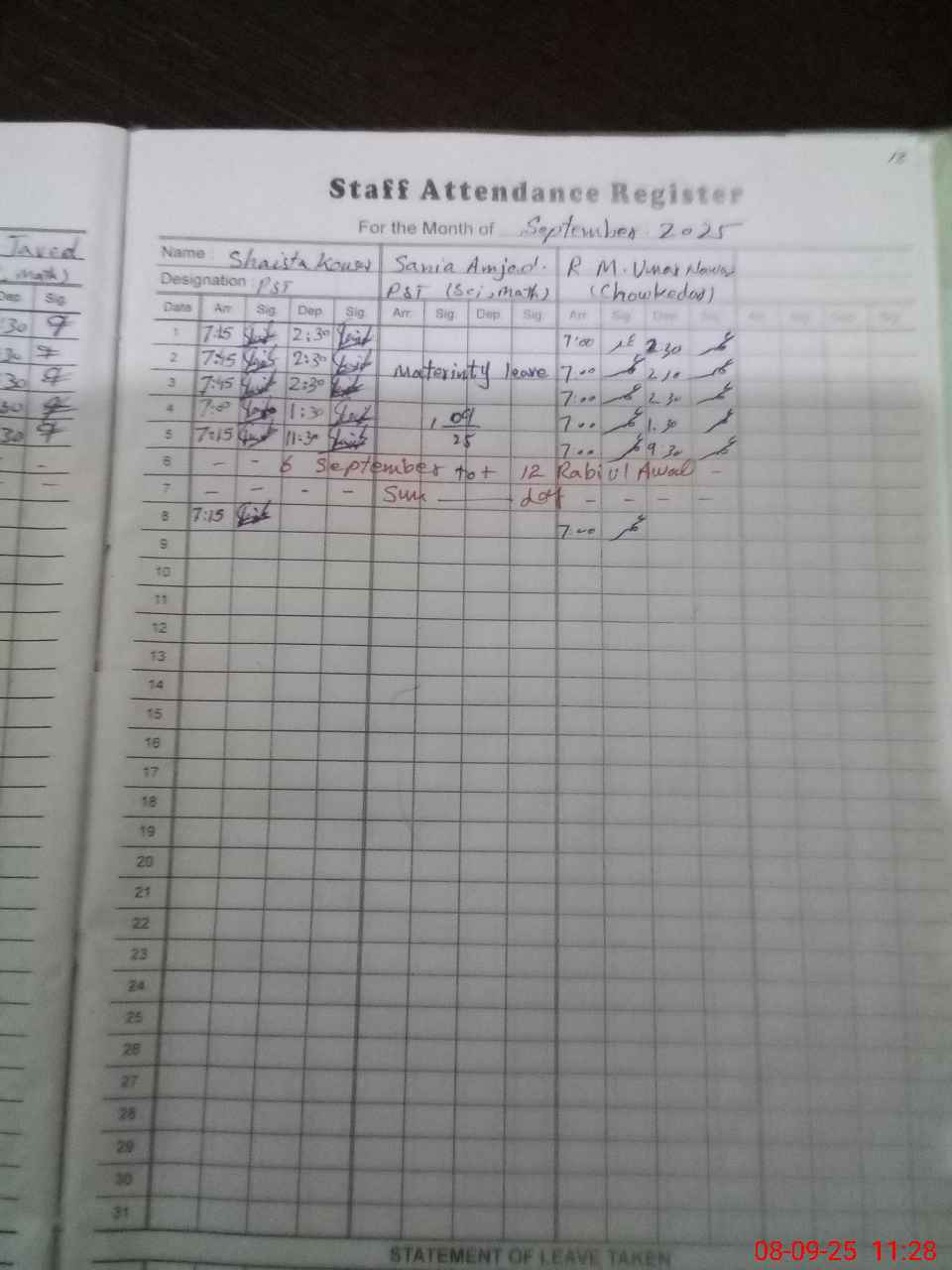 | 33**** | Sa**** Am**** | PST | Regular | 0 | 0 | 0 | 0 | 0 | 0 | 0 | 0 | 0 | Maternity |