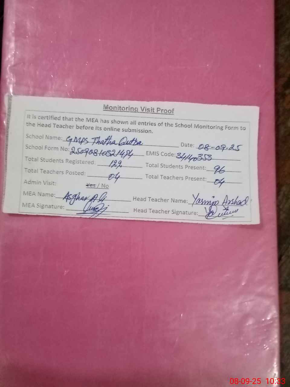 | EMIS Code: 34140353 | Name of School: GMPS THATHA QUTBA | |||