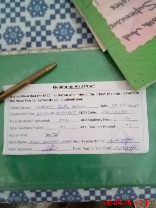| EMIS Code: 34110346 | Name of School: GMPS THATHA AZAM | |||