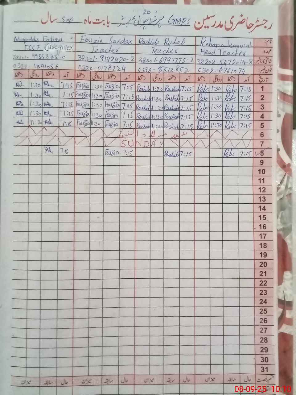 | Name: RE**** KA**** Designation: (School Headmaster's/Headmistress's) PST Phone/Cell Number: 03**** |