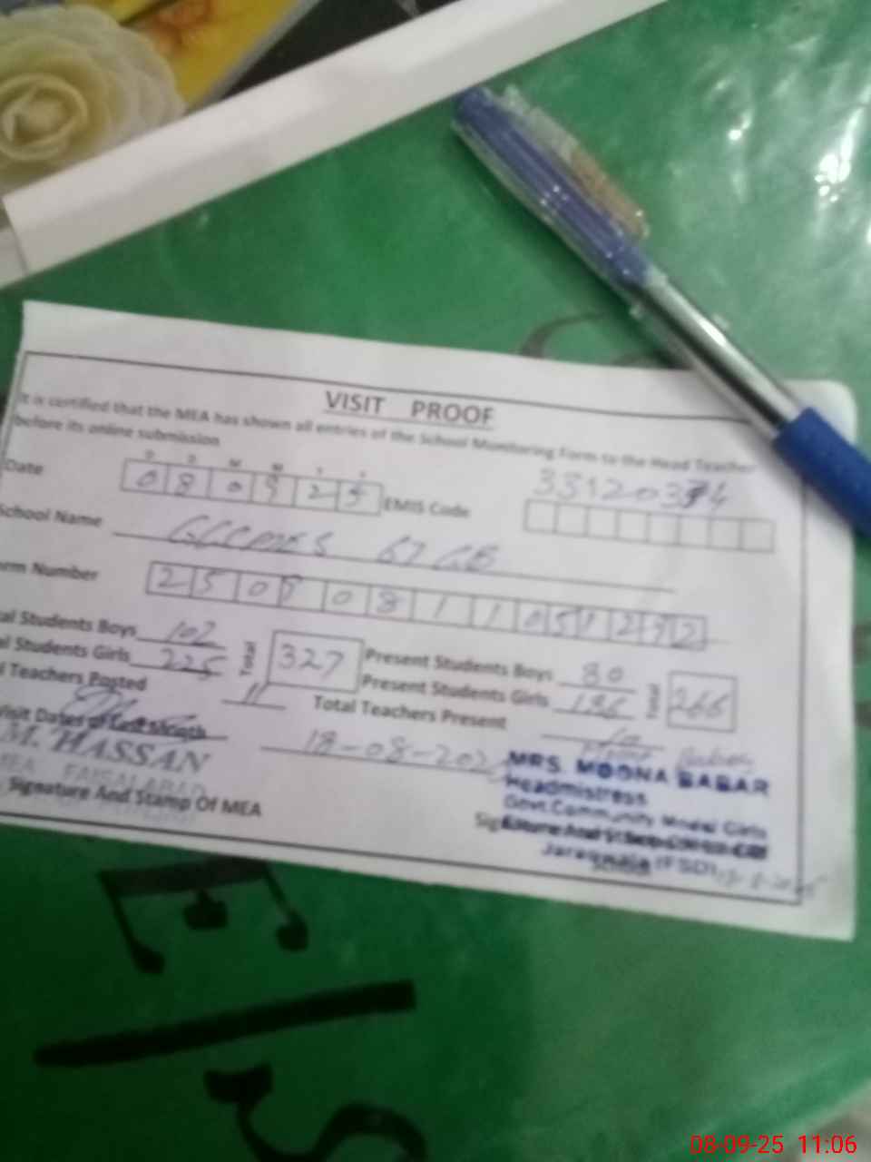 | EMIS Code: 33120374 | Name of School: GGCMES CHAK 67 GB JARANWALA | |||