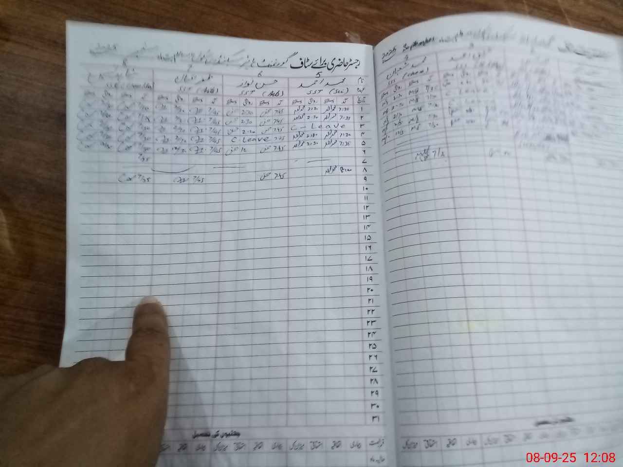 | CNIC | Full Name | Designation | R/C | Absence During Last Calender Month |