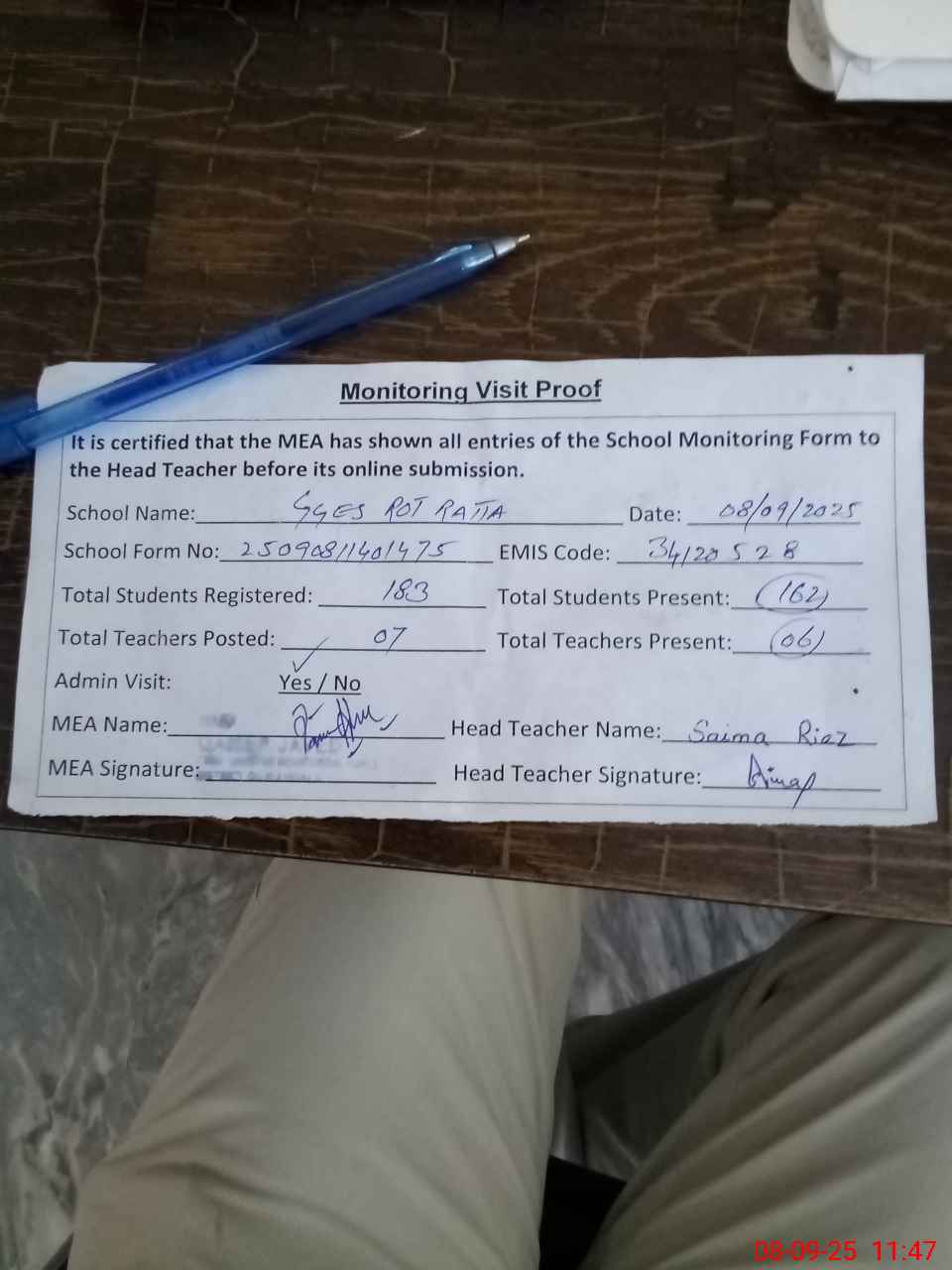 | EMIS Code: 34120528 | Name of School: GGES KOT RATTA | |||