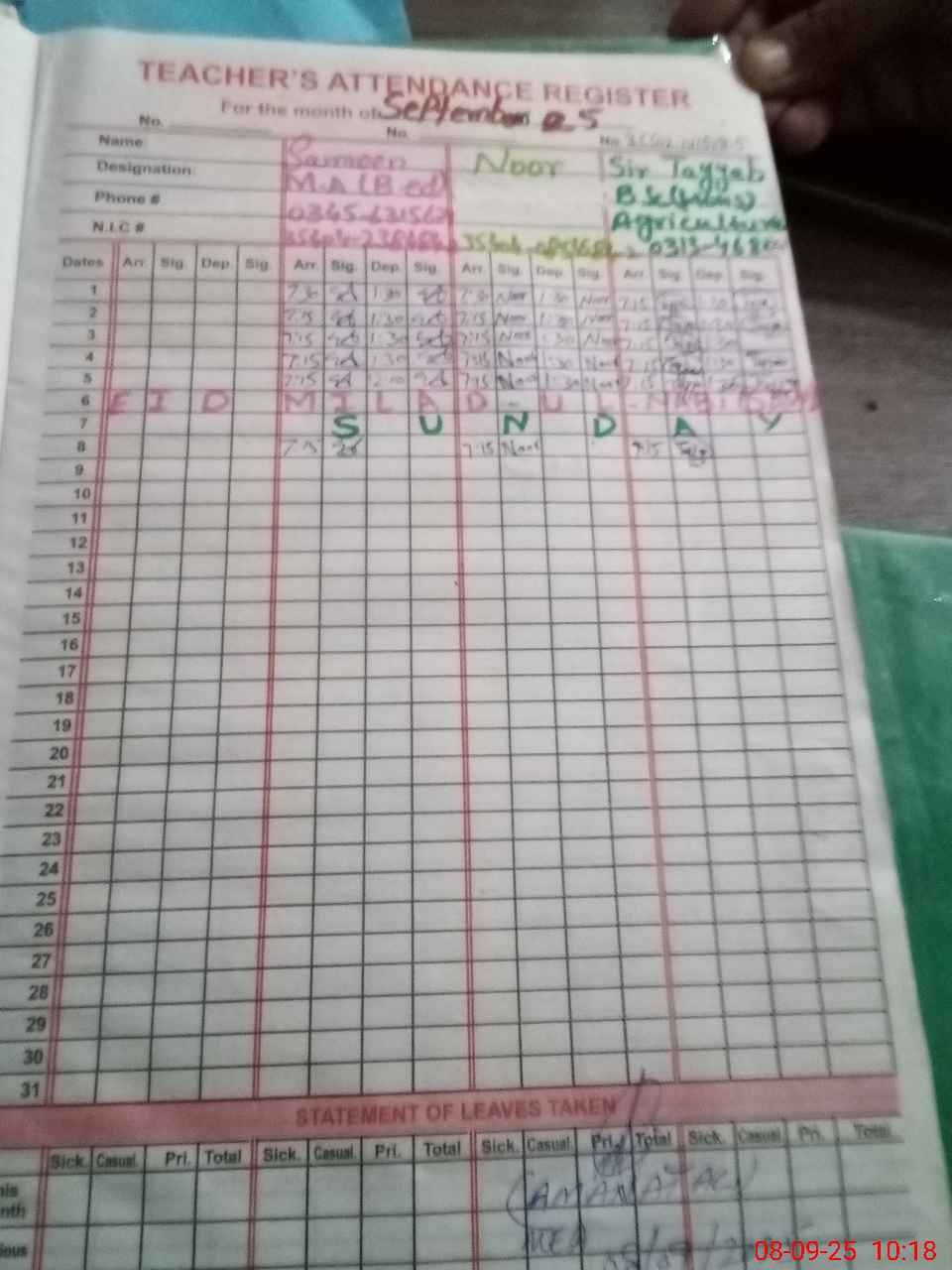 | Name: Ar**** Ra**** Designation: (School Headmaster's/Headmistress's) Pst Sci-math Phone/Cell Number: 03**** |