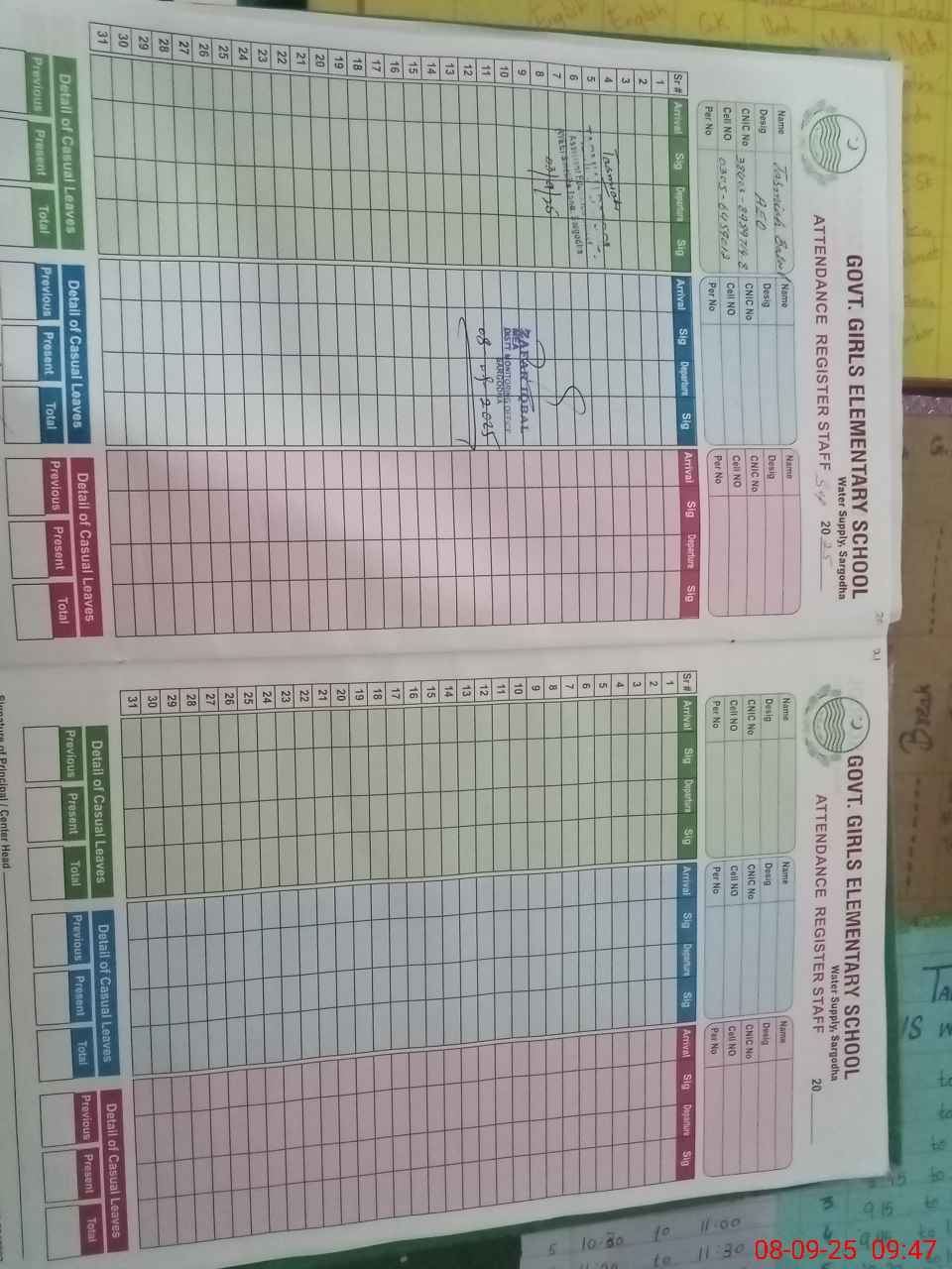 | CNIC | Full Name | Designation | R/C | Absence During Last Calender Month |