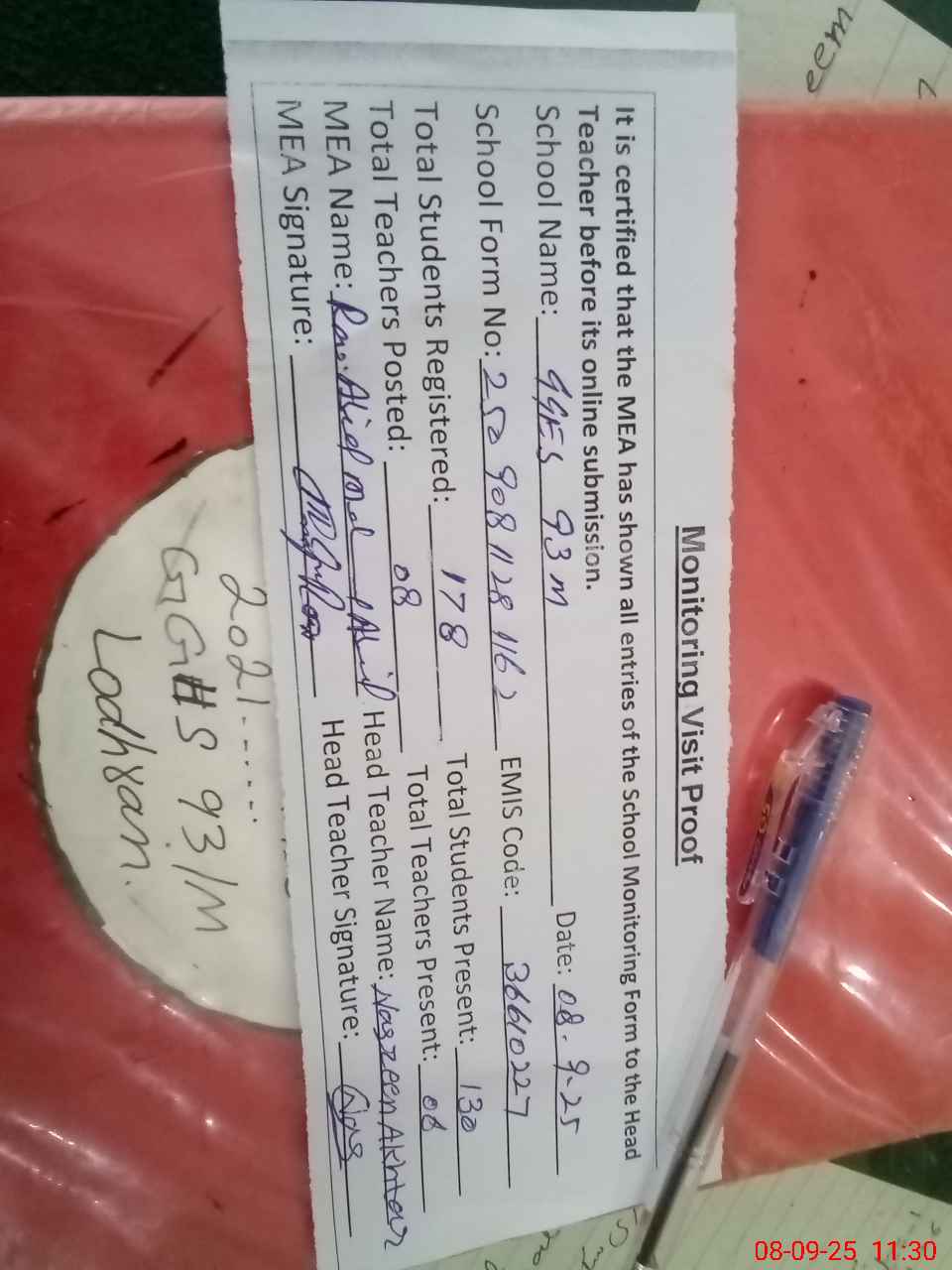 | EMIS Code: 36610227 | Name of School: GGHS 93/M LODRAAN | |||