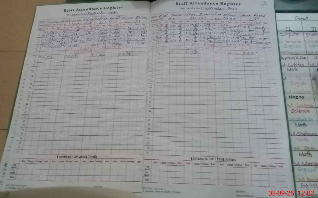 | Attendance Register | Head Teacher | MEA with School | Visit Proof |