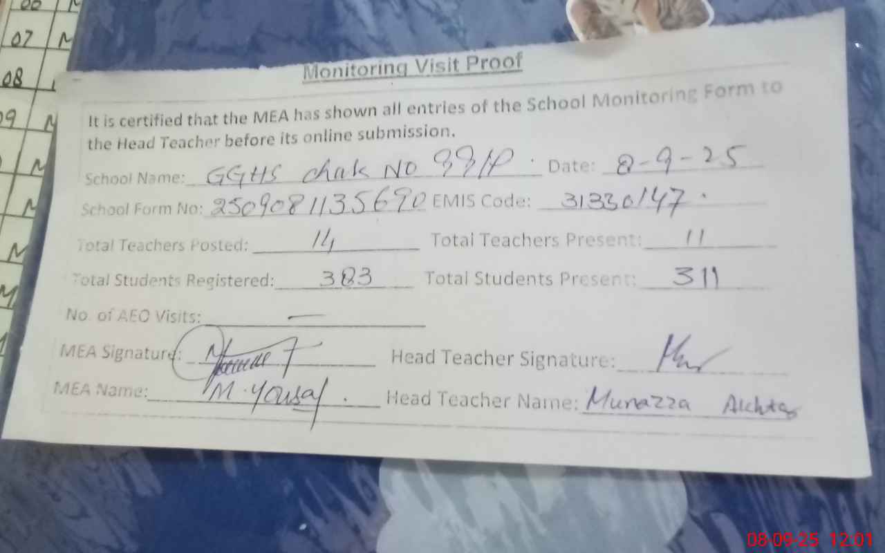 | EMIS Code: 31330147 | Name of School: GGHS CHAK NO. 99/P | |||