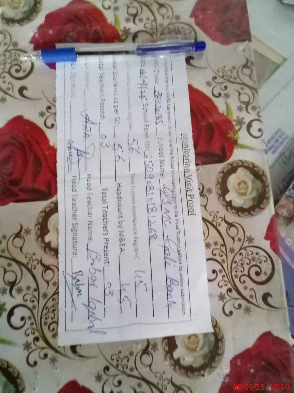 | Attendance Register | Head Teacher | MEA with School | Visit Proof |