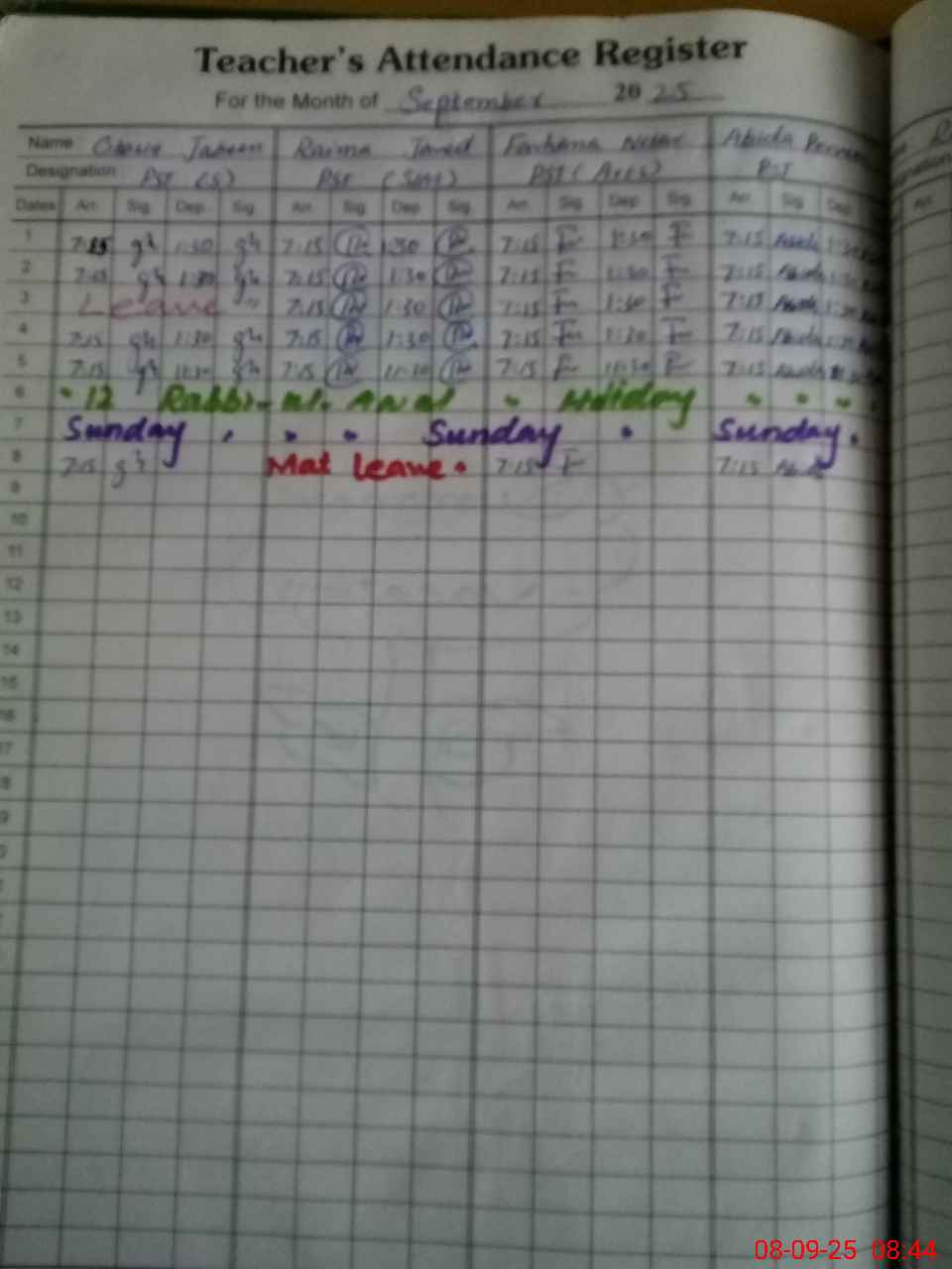 | Leave | Duty | Absent | Maternity | Medical | Ex- Pak |