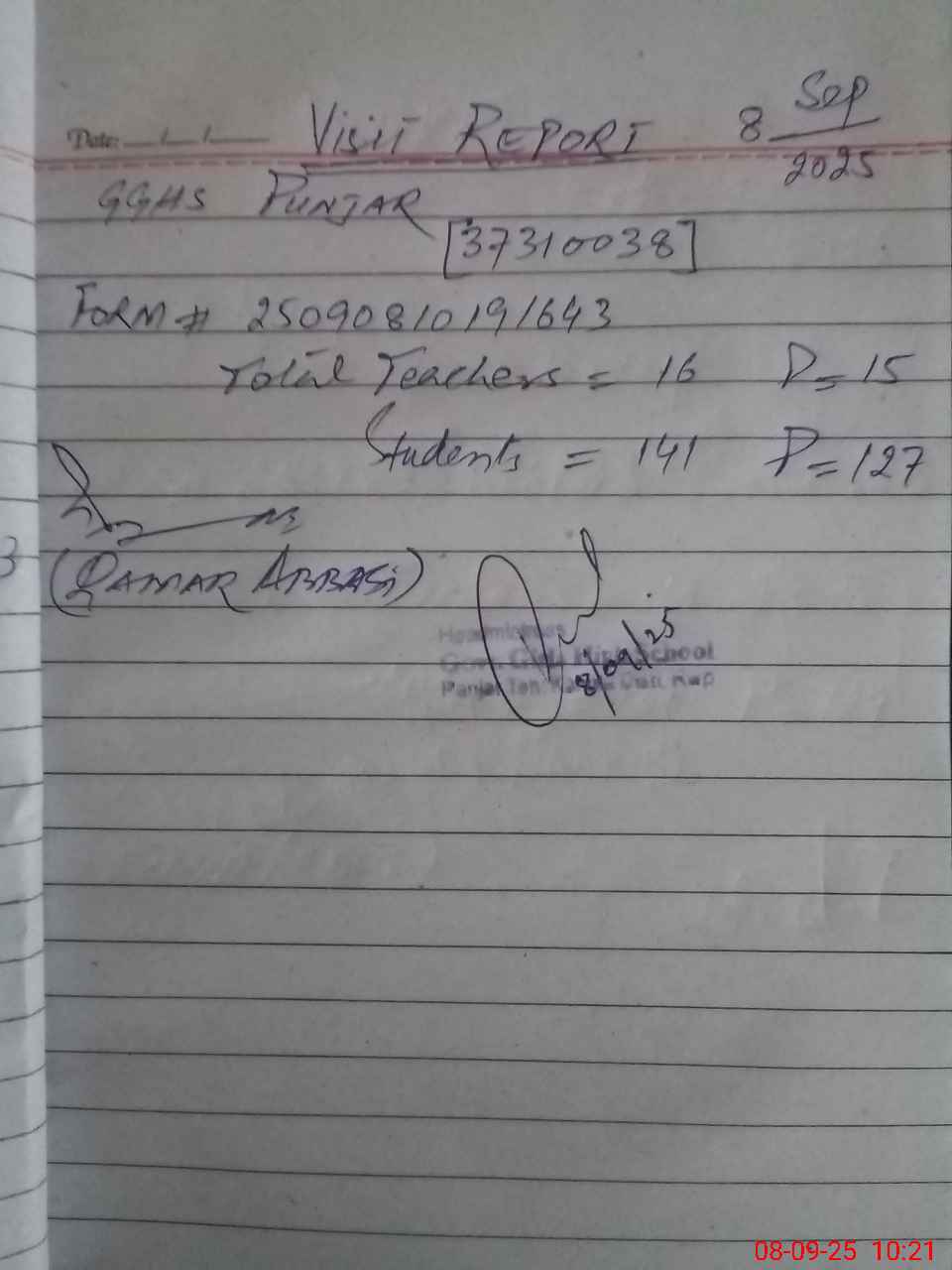 | EMIS Code: 37310038 | Name of School: GGHS PUNJAR | |||
