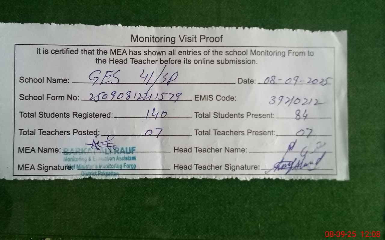 | EMIS Code: 39210212 | Name of School: GES 41 SP | |||