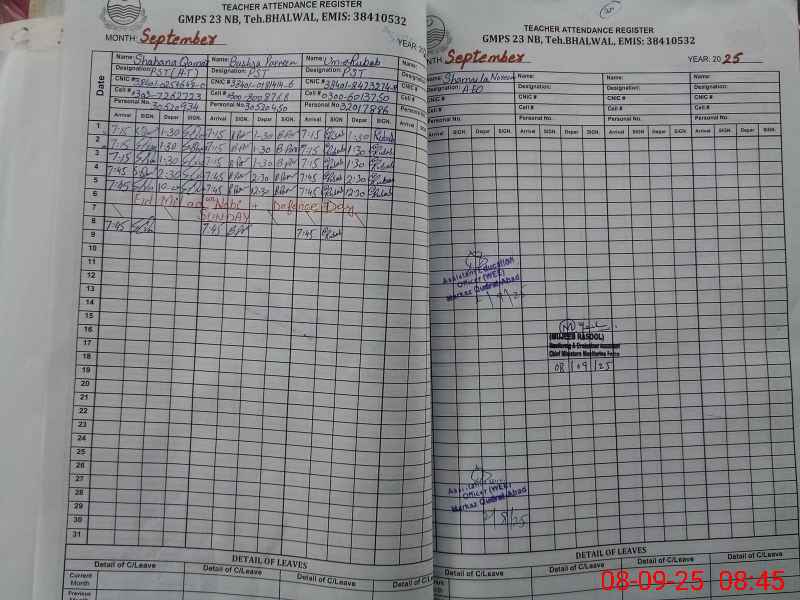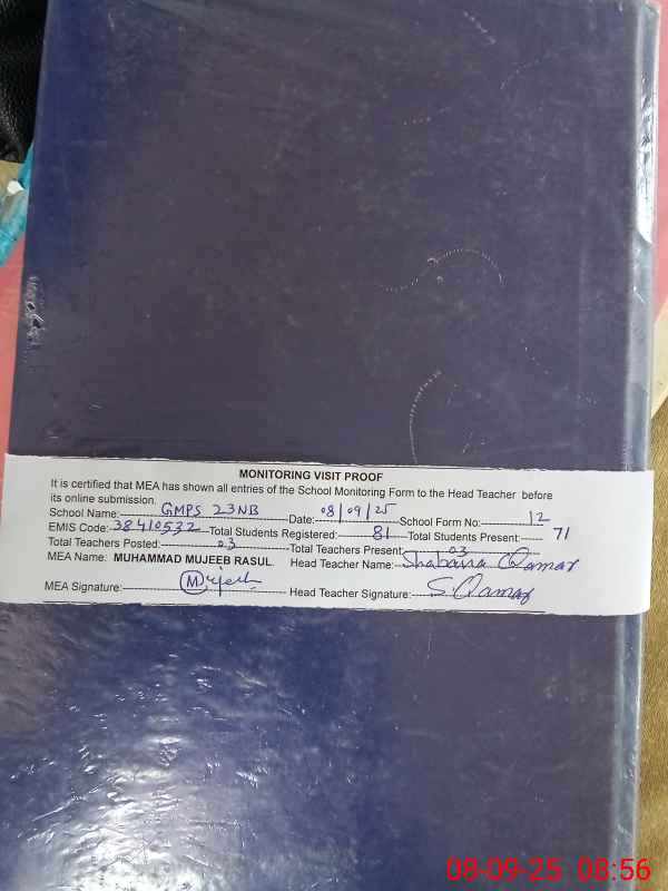 | EMIS Code: 38410532 | Name of School: GMPS CHAK NO.23 NB | |||