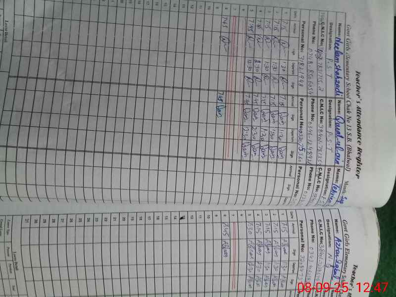 | Name: AS**** MA**** Designation: (School Headmaster's/Headmistress's) SSE (ENGLISH) Phone/Cell Number: 03**** |