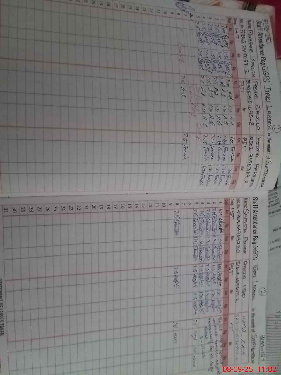 | CNIC | Full Name | Designation | R/C | Absence During Last Calender Month |