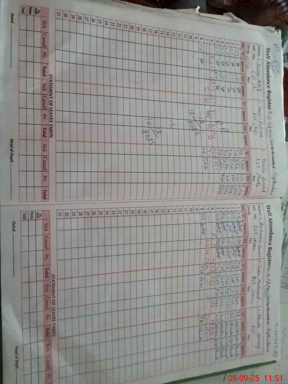 | CNIC | Full Name | Designation | R/C | Absence During Last Calender Month |