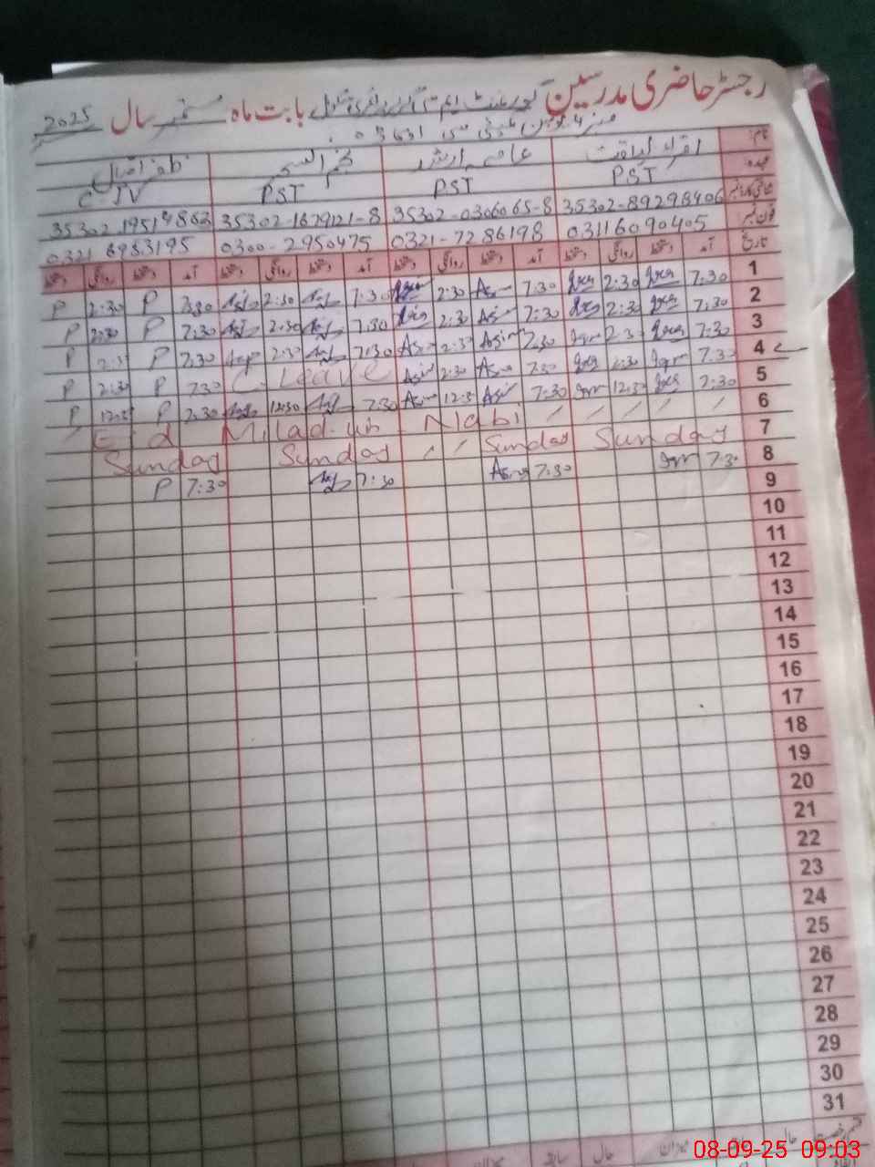 | Name: Na**** UsSa**** Designation: (School Headmaster's/Headmistress's) PST Phone/Cell Number: 03**** |