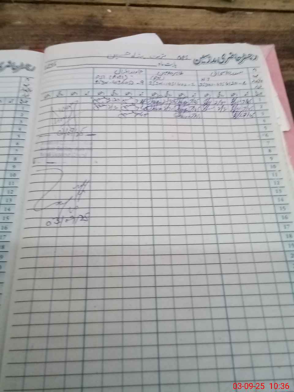 | CNIC | Full Name | Designation | R/C | Absence during last cal. month |