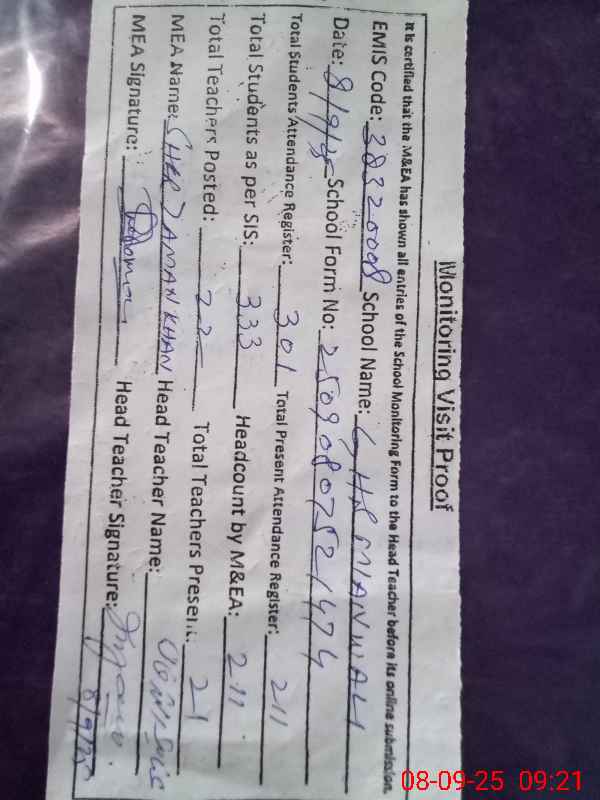 | EMIS Code: 38320008 | Name of School: GHS MIANWALI NEAR RAILWAY STATION | |||