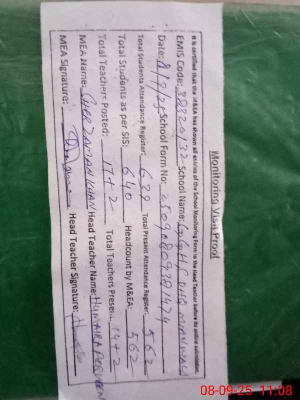 | EMIS Code: 38320132 | Name of School: GGHS DHQ MIANWALI | |||